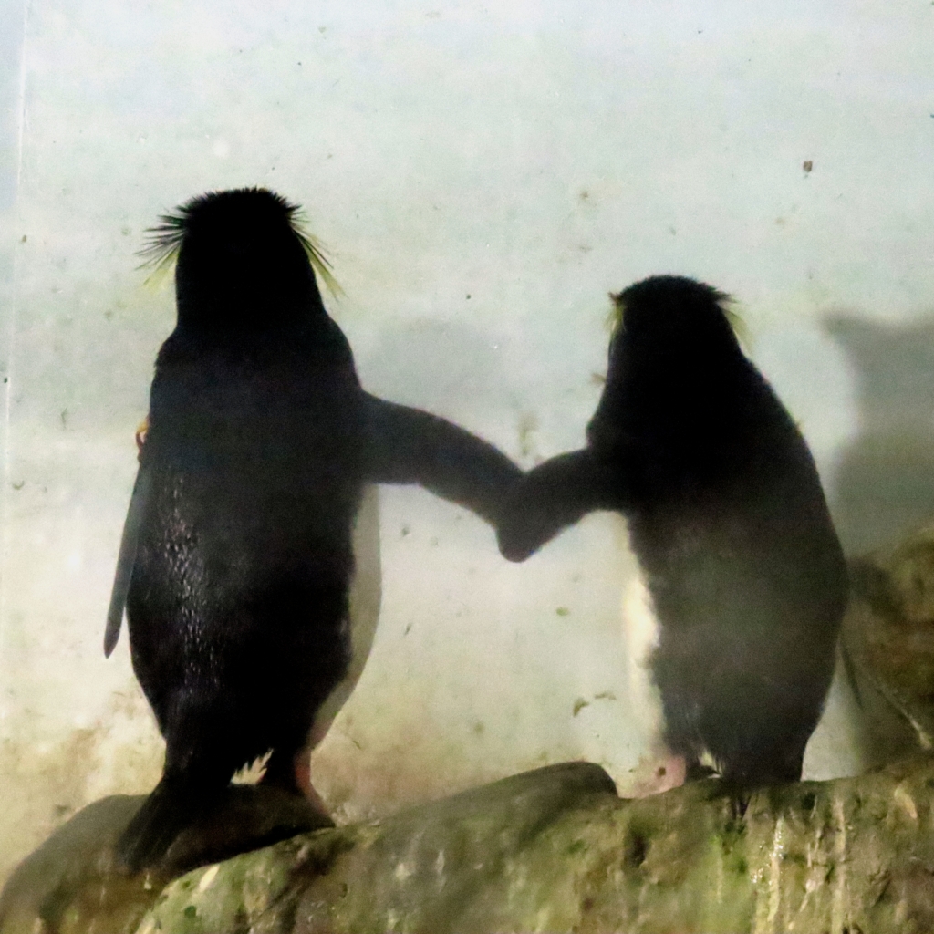 イワトビペンギンが手を繋いでいるようなシーンが撮れました