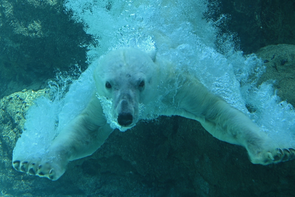 クッキーは余り飛び込まなくなって来て、この日はクッキーが岩の上に上がって来て「ひょっとしたら」飛び込むかな?と待っていたら飛び込んでくれました