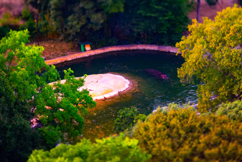 のんほいパークのナイトズー。夕日が暮れて夜が更けるそんなひと時をまるでミニチュアのように撮影した不思議な写真をどうぞ。撮影はのんほいパークの観覧車から。たぶんサツキかミネが写っているはずです。